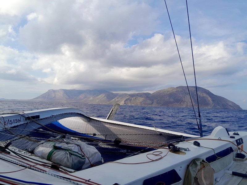 L’équipe de quart suivante, qui semble un peu plus expérimentée, prend son quart en seconde partie de nuit et passe le détroit des Dardanelles dans un vent mollissant, que nous dépassons au petit matin. Nous voilà déjà en mer Egée. Les nuages bas et les grains laissent place à une mer ensoleillée, un vent stable et modéré, et nous avalons la mer Egée à 15 à 20 nœuds de moyenne.