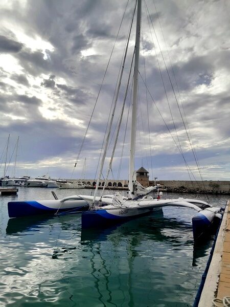 Et pas n’importe quel bateau, puisqu’il s’agit d’un trimaran ORMA, un voilier de compétition et de course au large, de la Classe dite ORMA. Des machines extrêmes, sur lesquelles les grands skippers se sont confrontés dans les années 1990 et 2000, marquant au passage toute une génération de marins.