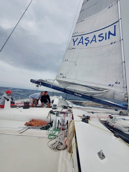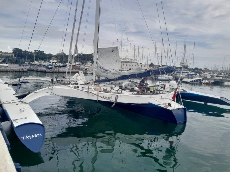 Deux journées intenses sont consacrées à la préparation du bateau. Nous logeons dans un des hôtels d’Ardic, avec sa vue imprenable sur la place Taksim. Le matin, dix minutes de marche jusqu’au Bosphore, où l’affréteuse et son staff viennent nous chercher à bord d’un Picnic, une magnifique vedette de fabrication artisanale arcachonnaise, et qui porte également le nom de Yasasin. Une heure et demi de navigation nous sépare du trimaran, basé dans le Sud d’Istanbul, à l’embouchure de la mer de Marmara. Le rythme est soutenu, avec des check-lists, une répartition des tâches et des rôles pour vérifier et préparer le bateau, une sortie en mer technique, la dernière sur ce bateau pour sa propriétaire. En soirée, la vedette nous ramène jusqu’à notre hôtel, déambulant à travers le Bosphore, son trafic, ses lumières. Les liens se tissent entre l’équipe turque et l’équipage français, qui préparent de concert le retour en France du bateau.