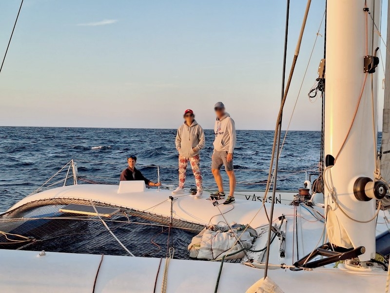 Je commence à prendre un certain recul. Ma check-list mentale des points de vigilance commence à s’étoffer. Nous n’avons pas de cartes papier ou d’instructions nautiques à bord. Pas de système de réception météo, il nous faut être en vue des côtes et d’un réseau GSM /3G pour les actualiser. Valentin, qui voit que je connais le coin, me demande régulièrement le cap à suivre, comme s’il naviguait à vue. Il anticipe peu les manœuvres, notamment de prises de ris ou de changement de voile d’avant, attendant qu’on soit surtoilé pour diminuer la voilure, comme si nous étions en configuration de course, Valentin souhaitant visiblement faire une performance. Les séquences de transition, que ce soit les changements de voile ou la préparation des repas, se font la nuit tombée, ce qui les rendent moins fluides et viennent ajouter du risque inutile.